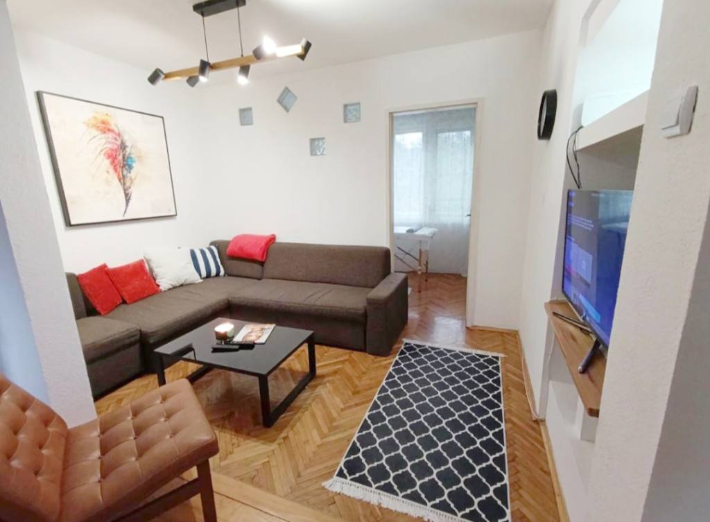Apartman (65kvadrata) se sastoji od 2 spavaće sobe (sa internetom i tv), hodnik sa fotografijama što sve gosti mogu vidjeti u bližoj i daljoj okolini Drvara,potpuno opremljenom kuhinjom, sa puno toplih i hladnih napitaka i naravno sve gratis za goste, zatim sa razdvojenim (posebno) kupatilo, a posebno talet. Apartman je opskrbljen sa jako puno kozmetike, perilicom rublja, fenom, peglom oko 40 peškira ima. Apartman je predviđen za 4 osobe,posjeduje besplatan WiFi, besplatan parking, vanjsku(ljetnu) baštu sa roštiljem,tu je i uređeno dvorište sa pogledom na prirodu. Posjeduje klima uređaj kao i "norveške" radijatore. Jako je pogodan za invalide jer je u prizemlju i u stanu nema pragova. Pušenje unutar aprtmana nije dozvoljeno, kao ni kućni ljubimci. Cjena apartmana za jedno noćenje je 50 eura.